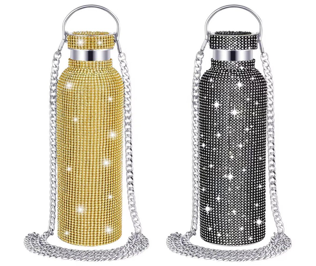 SHINE ON: Bedazzled with over 5000 shimmering rhinestones, this epic water bottle is perfect for on the go. The leak-proof screw-on lid with integrated carry handle and removable carry chain will make sure you can sliv your best life. Perfect for everyday use and music festivals.