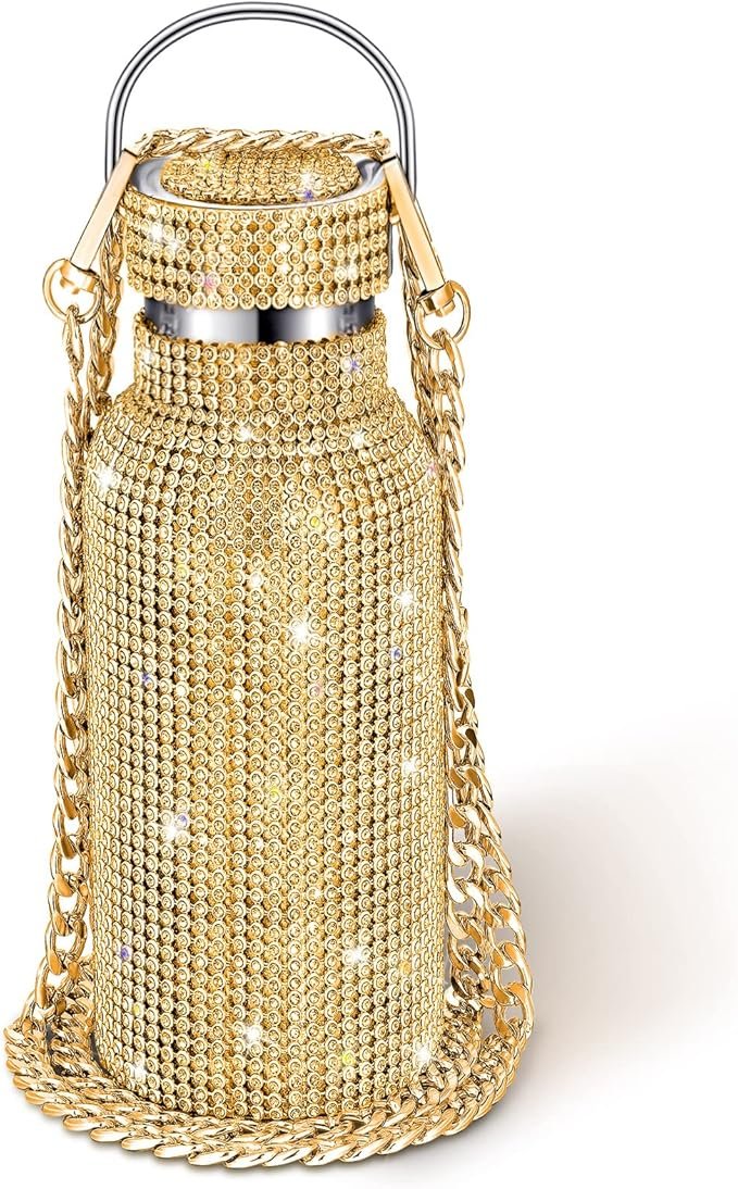 SHINE ON: Bedazzled with over 5000 shimmering rhinestones, this epic water bottle is perfect for on the go. The leak-proof screw-on lid with integrated carry handle and removable carry chain will make sure you can sliv your best life. Perfect for everyday use and music festivals.