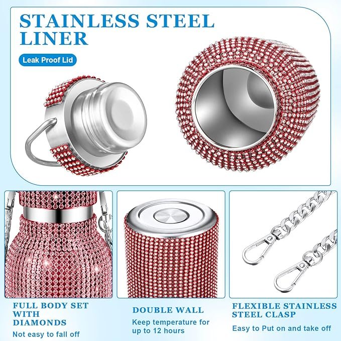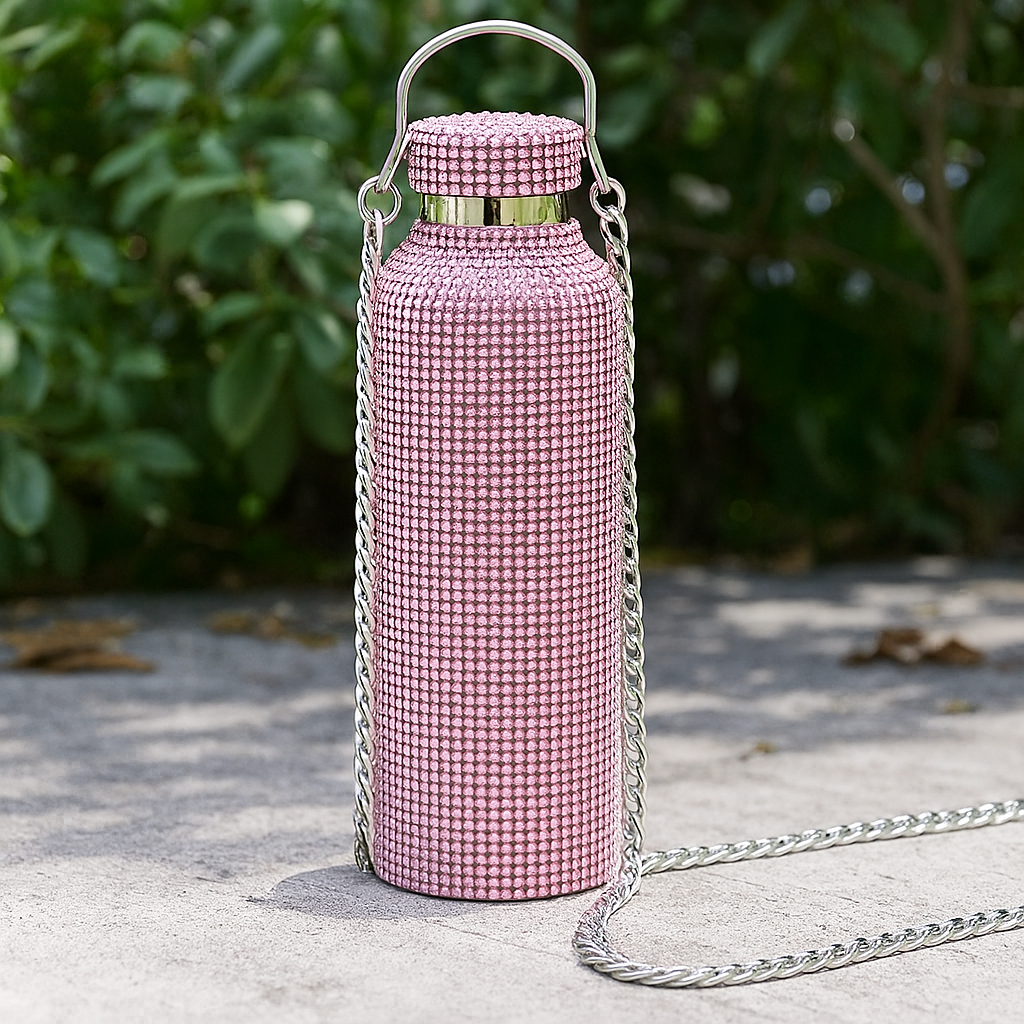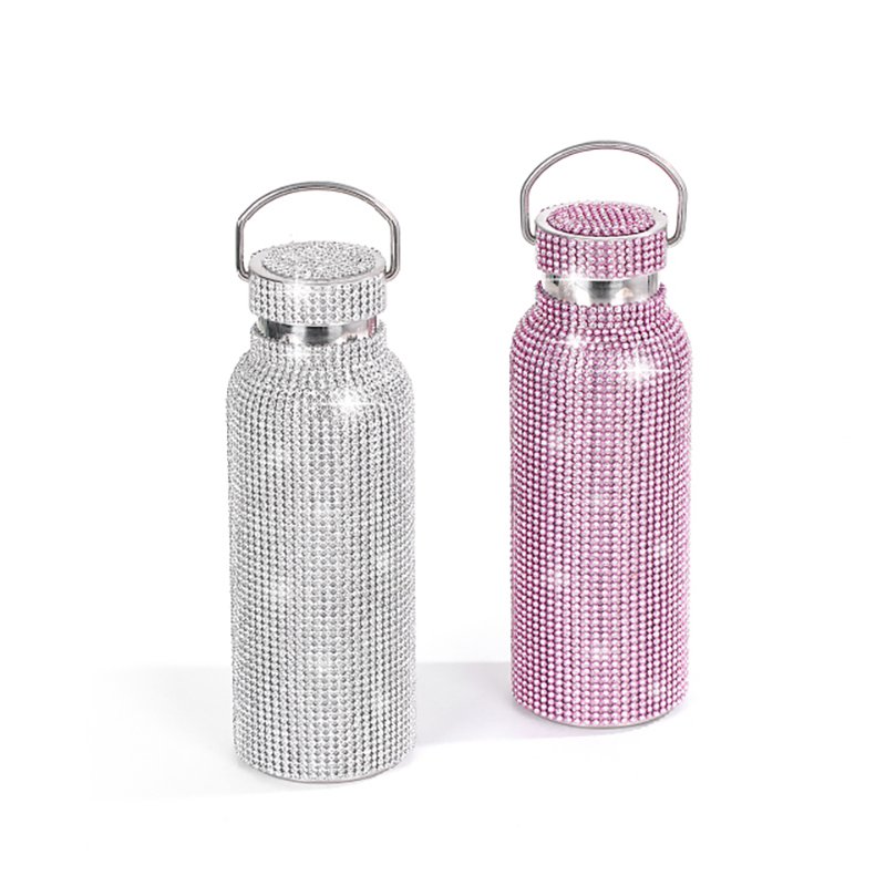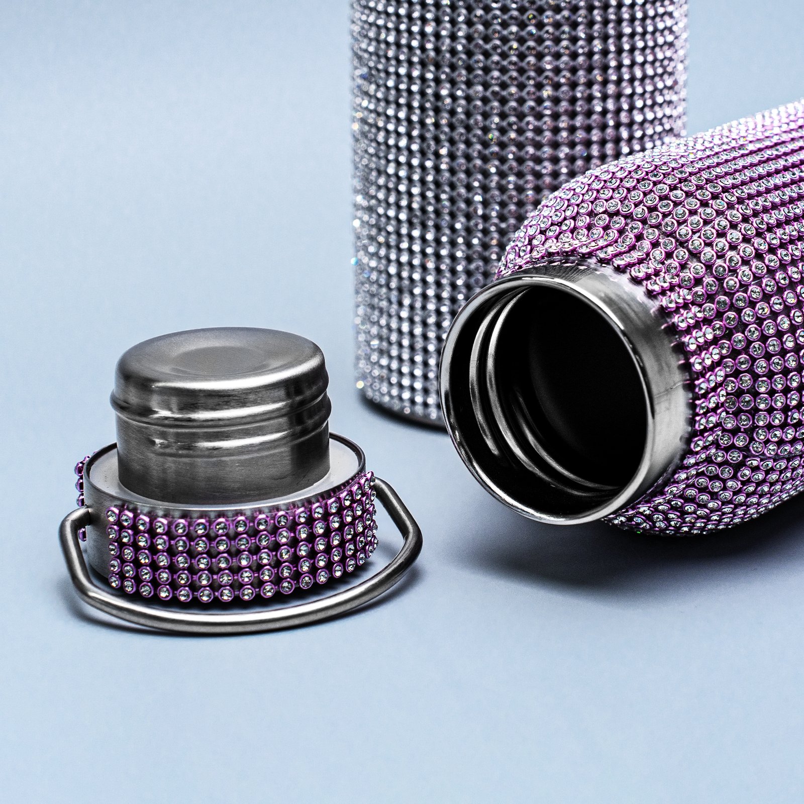 SHINE ON: Bedazzled with over 5000 shimmering rhinestones, this epic water bottle is perfect for on the go. The leak-proof screw-on lid with integrated carry handle and removable carry chain will make sure you can sliv your best life. Perfect for everyday use and music festivals.